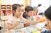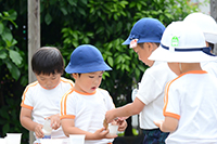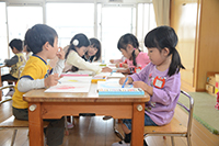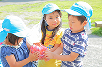 社会に居場所を見つけて自分の役割を果たす喜びを知ることは、知的な学習と共に人間形成期の最重要となる課題の一つです。知的な学習も、幼児期は「暗記中心」ではなく、ましてや「他人との競争」ではなく、子どもどうしの心がふれあう、共に学ぶべき課題としてとらえることを本園では重視しています。自分を大切にし、他者のことも想像する力を持っている人、物事を平和に解決する力を持っている人を育てていきたいと考えております。