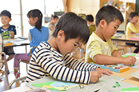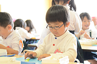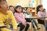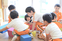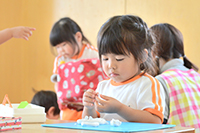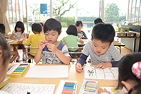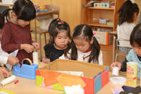 仲間と共に、協調的な雰囲気の中、主体的に学ぶことによって「学習することは楽しい」と知った幼児は、自ら考え、自ら動く人に育っていきます。幼児期の学習は「結果重視」ではなく、幼児の心と発達に寄り添う「プロセス重視」が将来的に伸びると考え、大切と考えます。